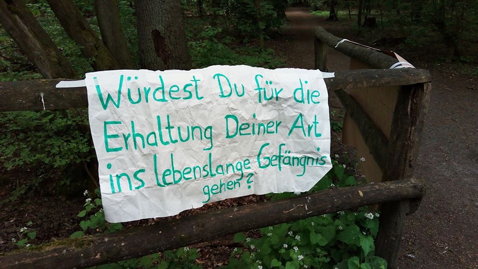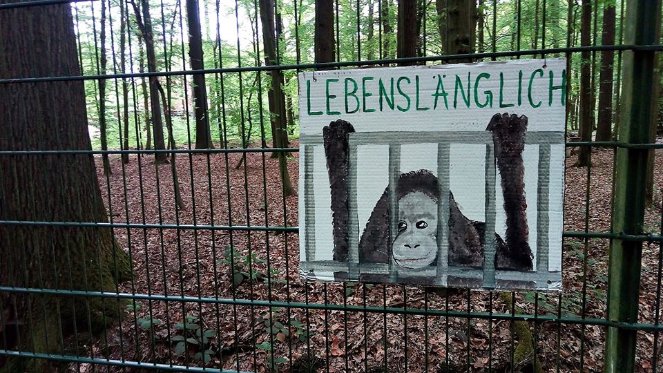 Da spaziert mensch dieser Tage nichtsahnend durch jenes Waldstück am Aasee, das an den Münsteraner Zoo grenzt, und findet dort eine mit Protestplakaten ausgestattete Umzäunung vor – eine wichtige Aktion, denn: die Ausgangssperre für sogenannte „Zootiere“ ist lebenslänglich, ihre Isolation ein unzumutbarer Dauerzustand.