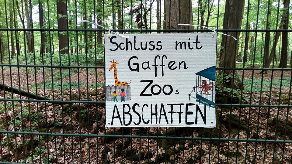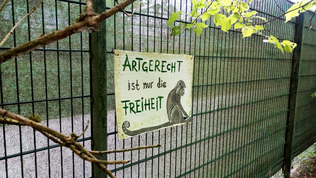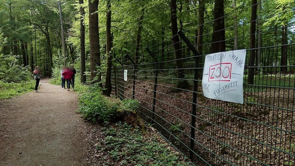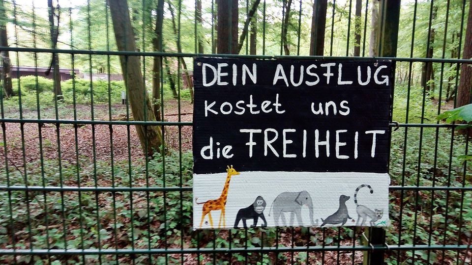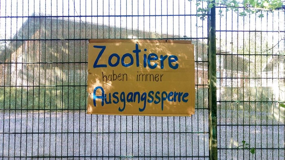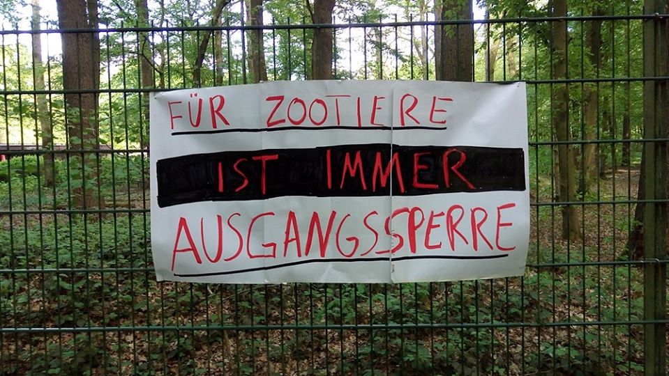 Da spaziert mensch dieser Tage nichtsahnend durch jenes Waldstück am Aasee, das an den Münsteraner Zoo grenzt, und findet dort eine mit Protestplakaten ausgestattete Umzäunung vor – eine wichtige Aktion, denn: die Ausgangssperre für sogenannte „Zootiere“ ist lebenslänglich, ihre Isolation ein unzumutbarer Dauerzustand.