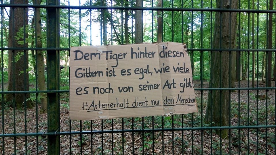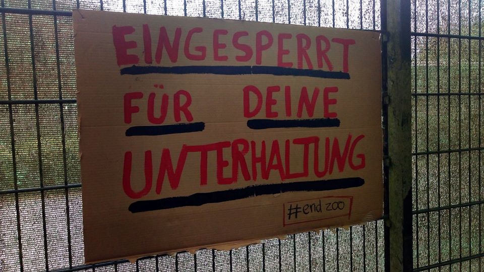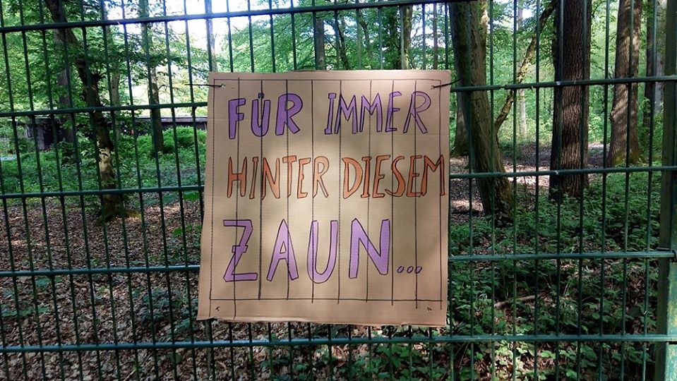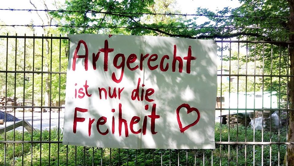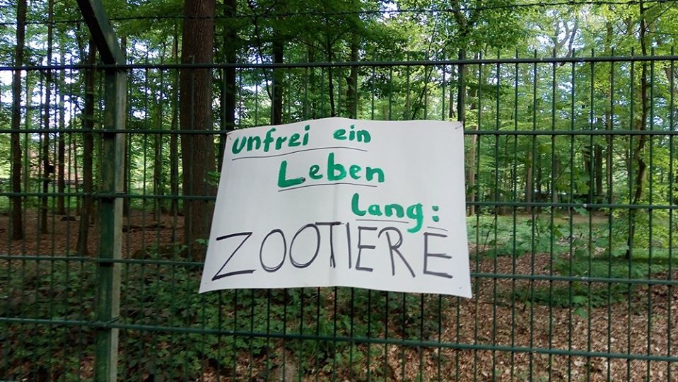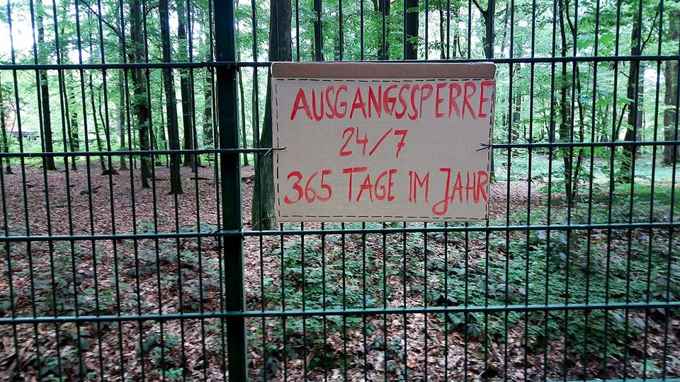 Da spaziert mensch dieser Tage nichtsahnend durch jenes Waldstück am Aasee, das an den Münsteraner Zoo grenzt, und findet dort eine mit Protestplakaten ausgestattete Umzäunung vor – eine wichtige Aktion, denn: die Ausgangssperre für sogenannte „Zootiere“ ist lebenslänglich, ihre Isolation ein unzumutbarer Dauerzustand.
